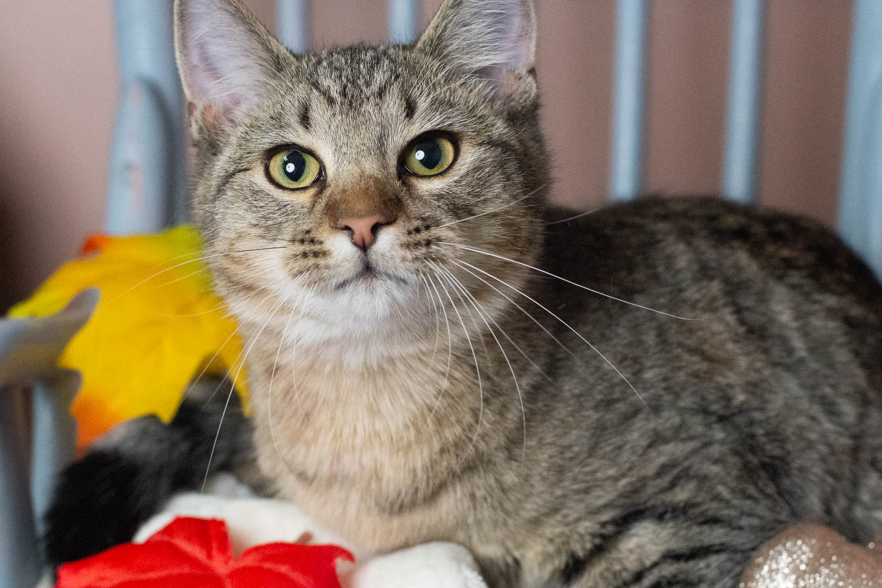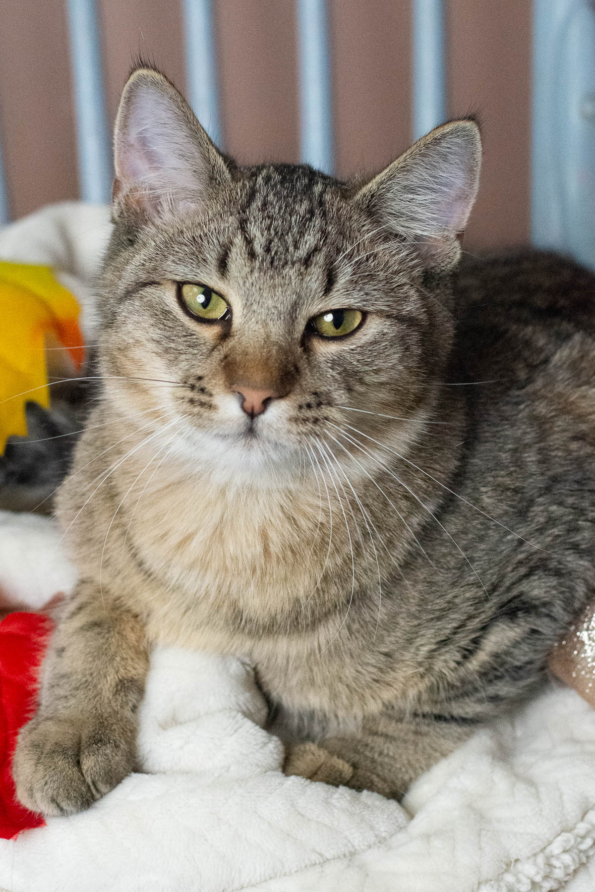 Just like his namesake from the hit TV show, House is a “fearless, sassy” boy,” according to his foster mom. He likes to make the rounds, alternating between curling up with his people and playing with reckless abandon. “House, like the tv character, has an addiction....to toys.” That’s especially true when it comes to scaling a cat tree and staking claim to his favorite wand toy. “He will actually play tug-of-war with it because it’s HIS!” House would thrive in a home with someone willing to “help him run those zoomies out” and then, when he switches gears, oblige with a “quiet cuddle.” Ready for House to doctor up some snuggly fun with you?
