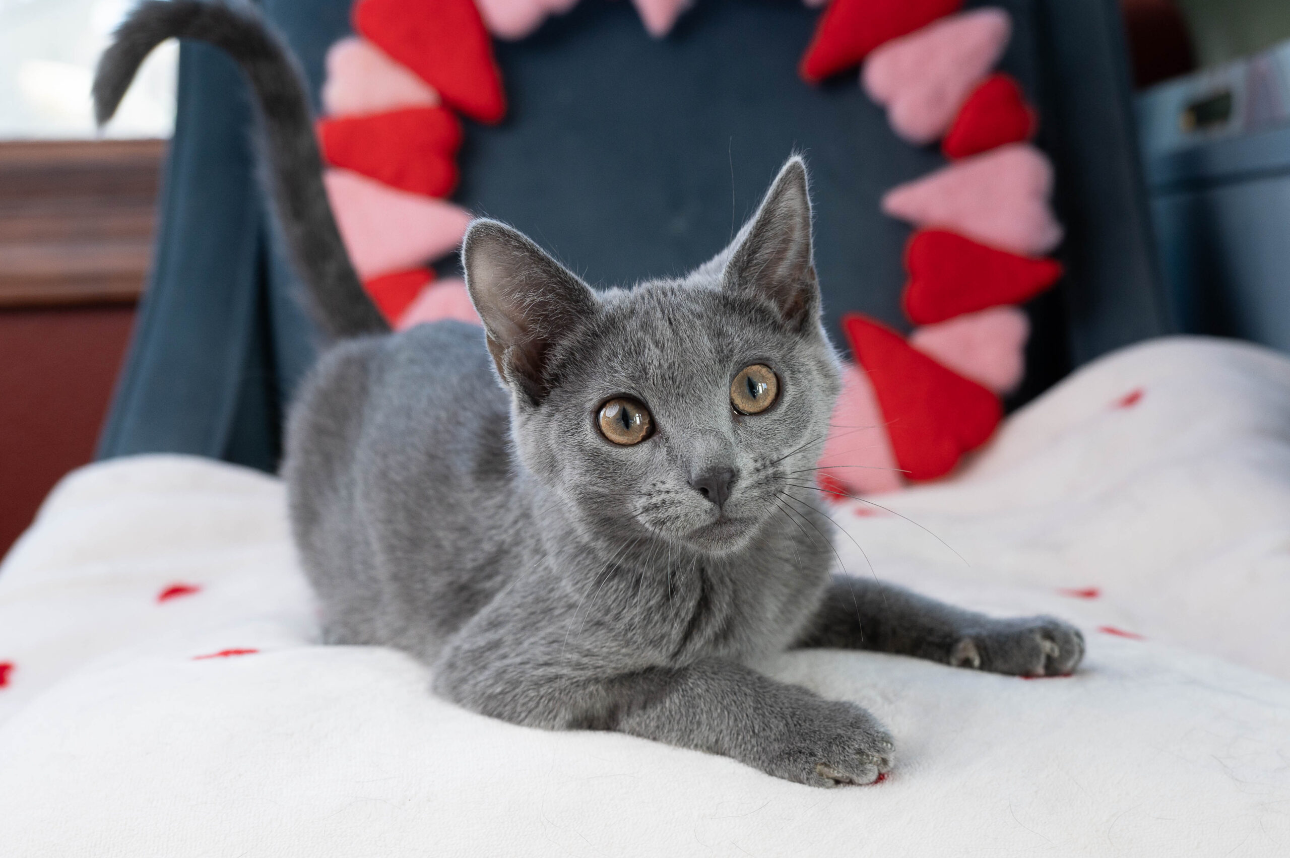 It’s only fitting that this little gray guy is part of the “Midwestern Slang” litter, because he usually has something to say! Ope is “playful, cuddly and loud,” according to his foster mom. In fact, his favorite hobby involves chatting about his foodie tendencies: “eating all of the snacks and telling you about needing more!” But then, Ope loves having a buddy or receiving affection almost as much as snacking and talking your ear off. “He would thrive in a home where there is plenty of love to go around. He will need a playmate, human or animal.” Are you ready to talk about taking Ope home?