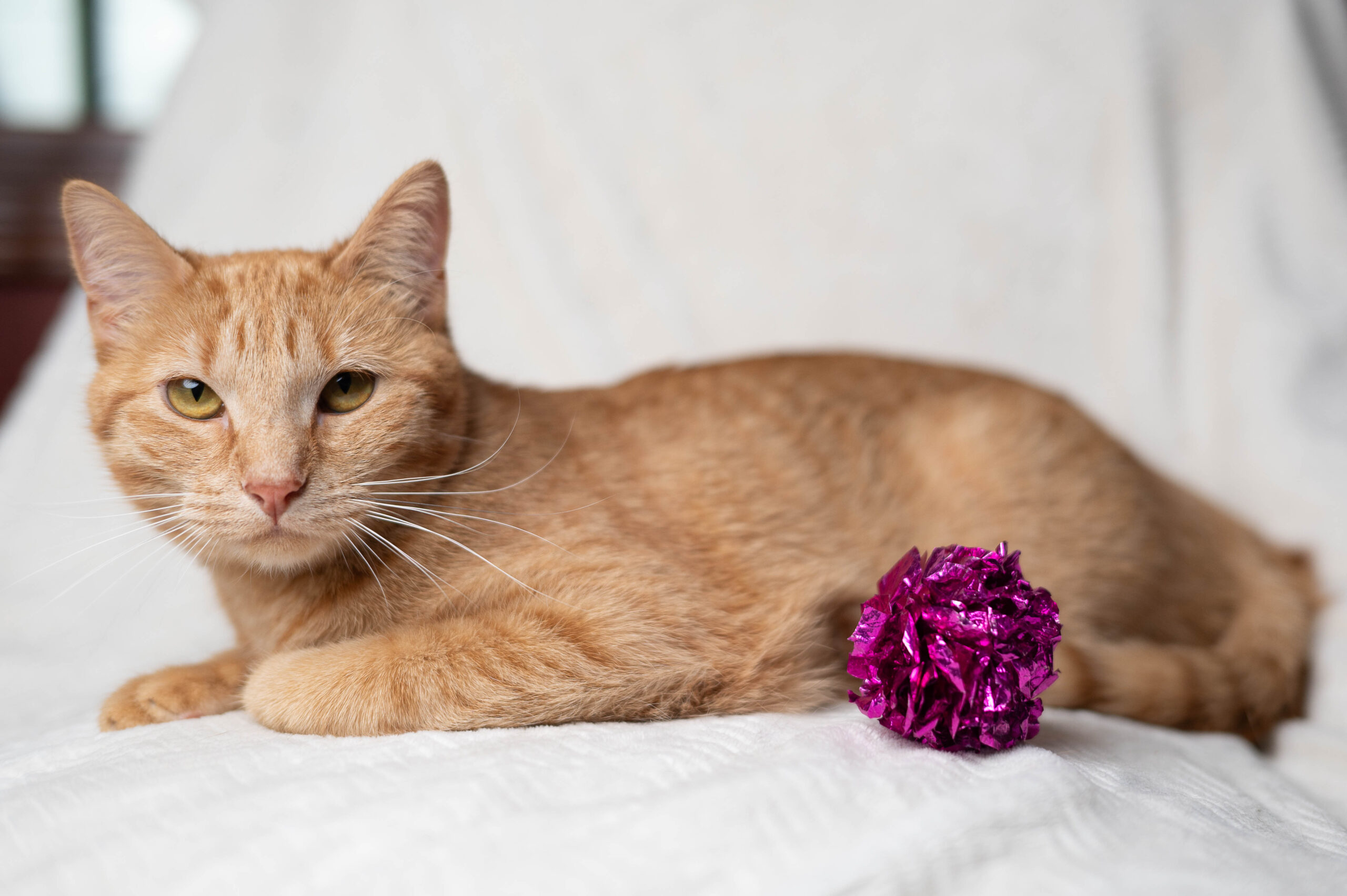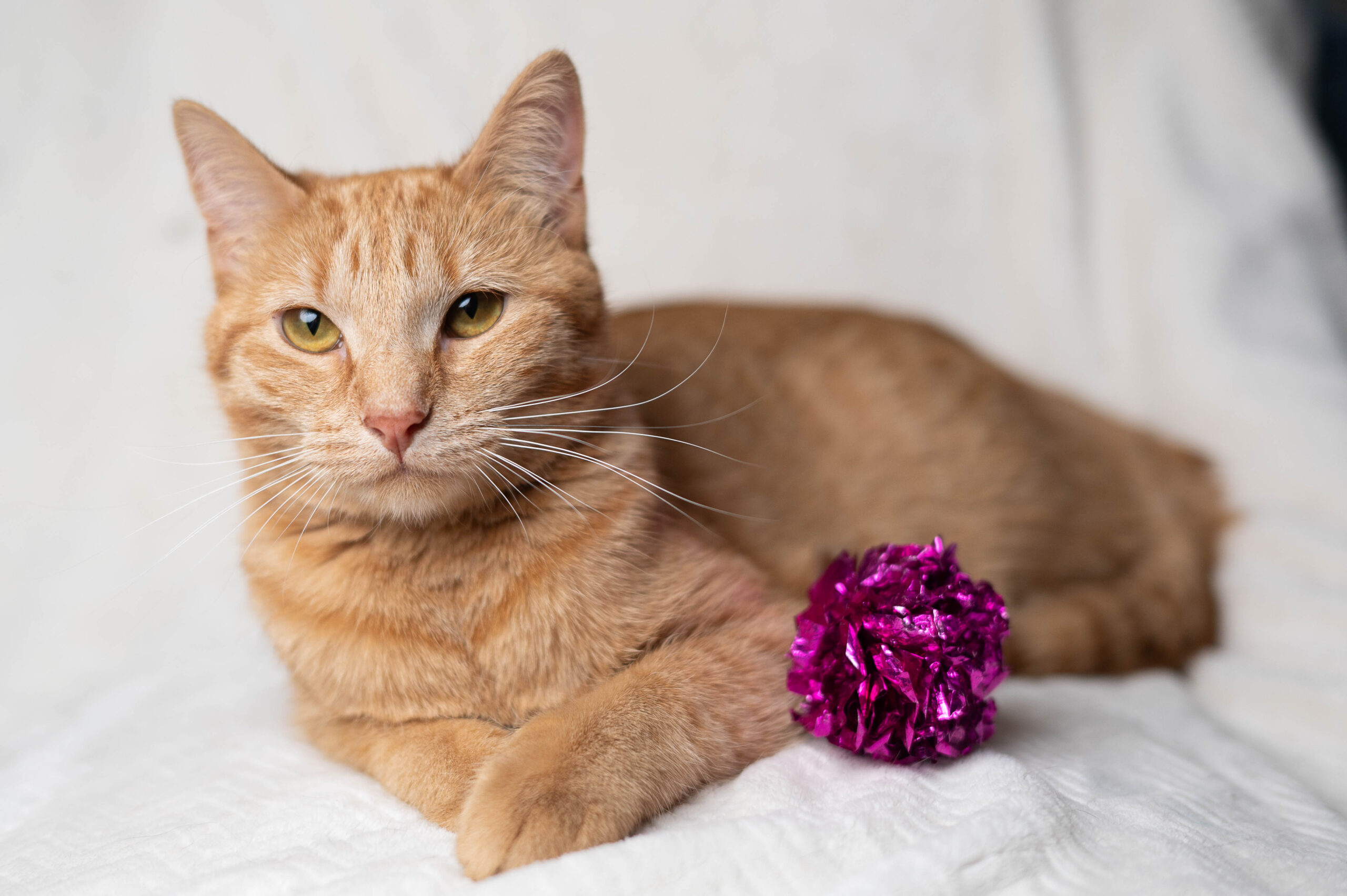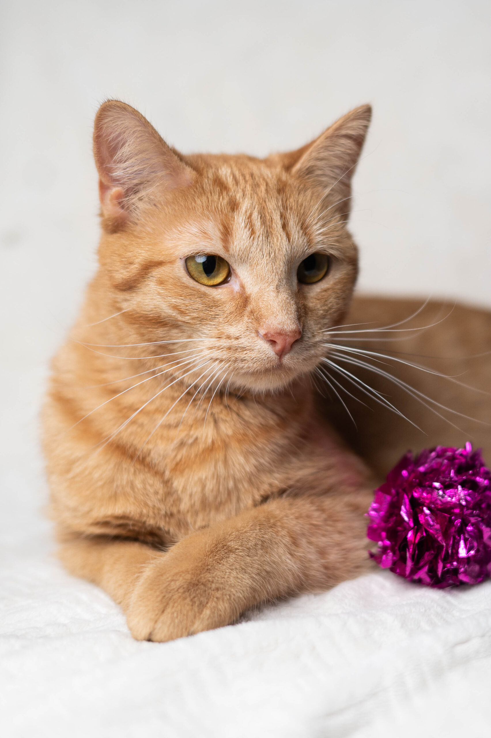 From her uncommon coat to her superb snuggles, Oranda is as special as the fancy goldfish she’s named for. “I love how she will snuggle,” says her foster mom. “She will sleep with me all night long!” And that golden coat of hers? Only one in five orange cats are female. Oranda’s other claims to fame include her "giant purr," getting along swimmingly with the resident cats, and her penchant for playtime, especially in the bathtub or with her foster mom’s knitting yarn. She may need a little patience as she settles into her forever home, and she’s not a fan of being picked up, but “she makes up for it with her great snuggles!” Are you ready for one whale of a good time with Oranda?