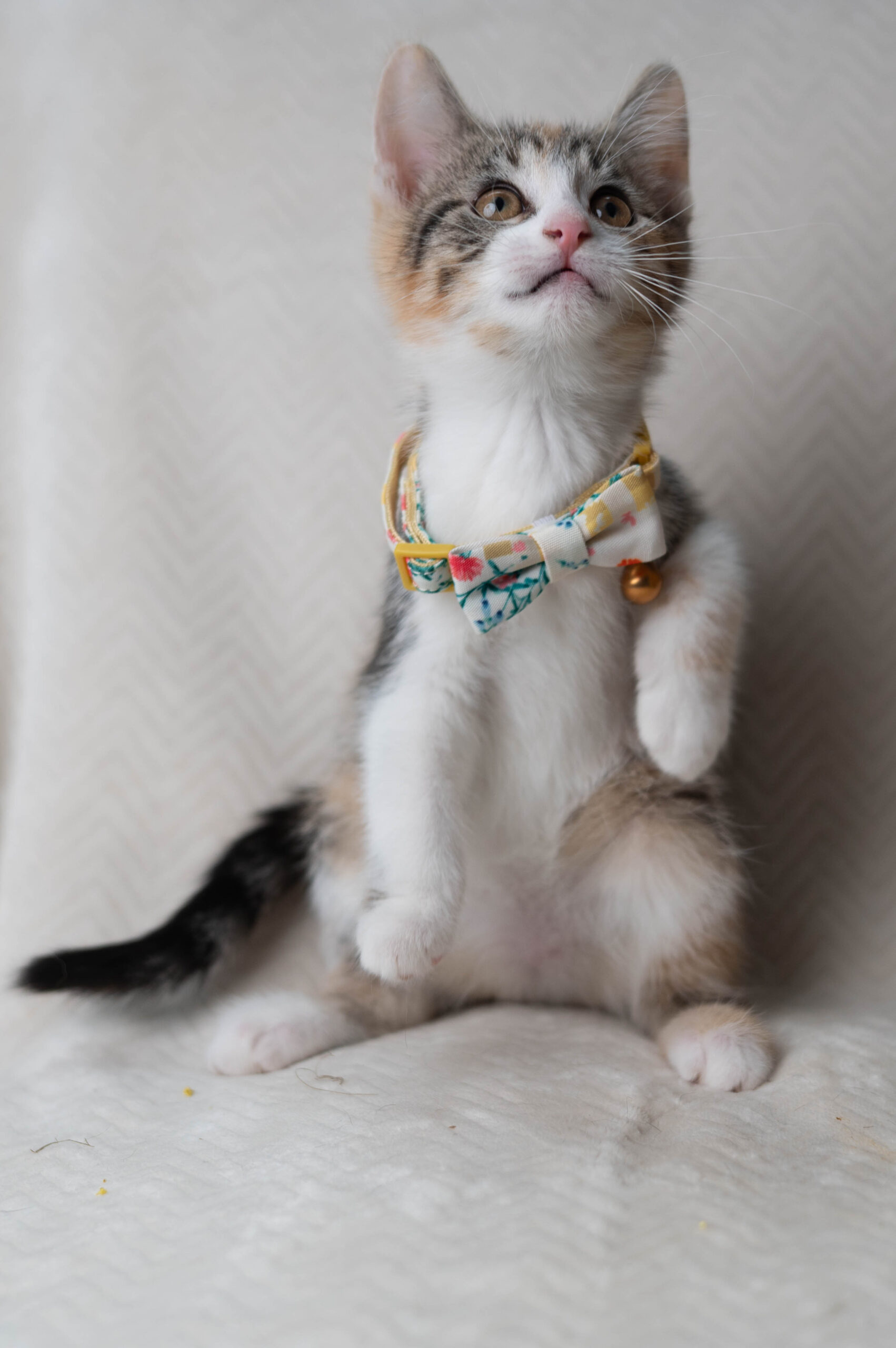 Just like her brother and sisters in the “Fonts Litter,” Tahoma lives for playtime. Her hobbies include “running and exploring, climbing the cat tree, chasing the other kittens and wrestling, and playing with crinkle balls,” says their foster mom. But even in that blur of fun, Tahoma stands out for a heartwarming reason: Her adorable calico coat includes an orange “heart” right